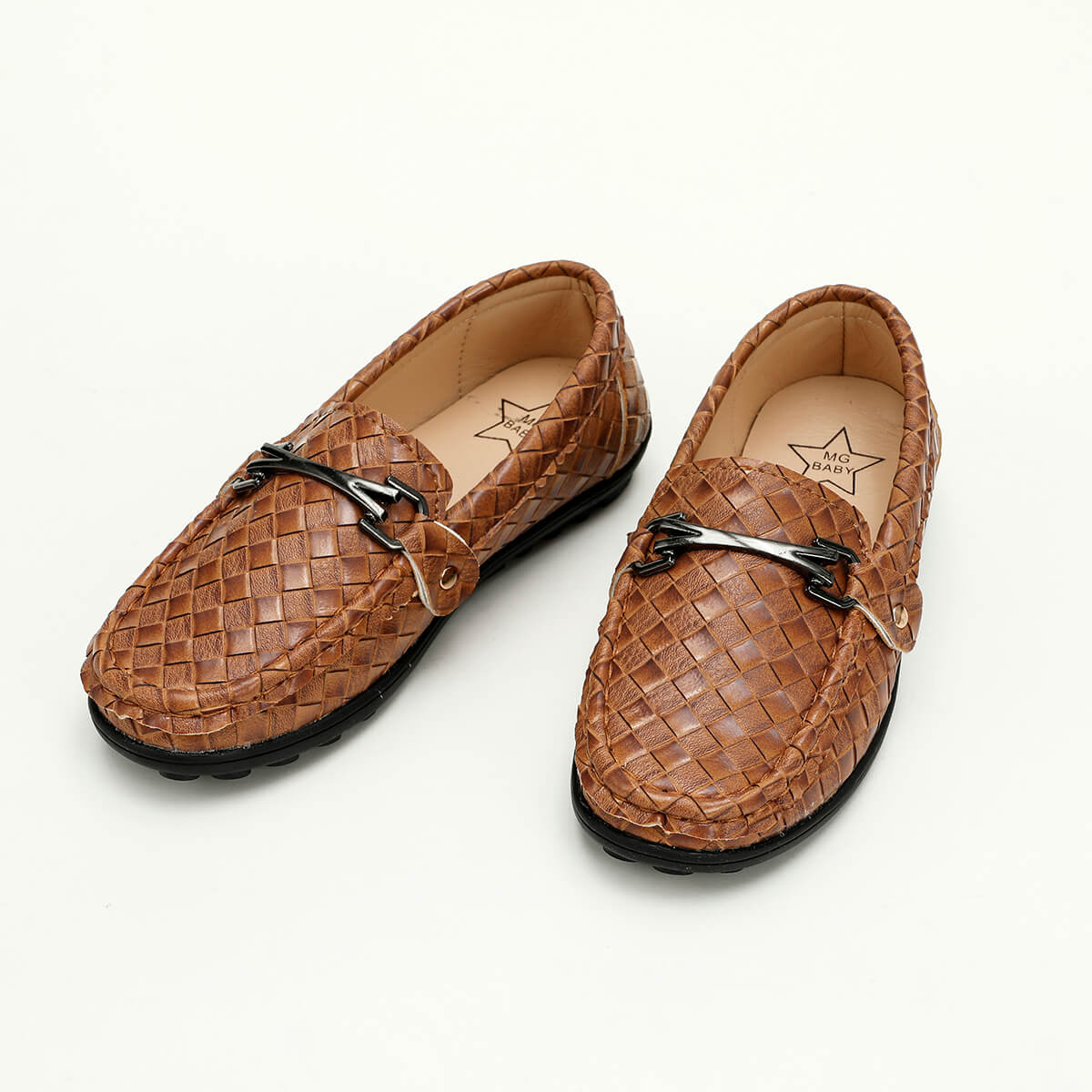 Kid Boy Soft Sole Weave Design Leather Shoes Wholesale