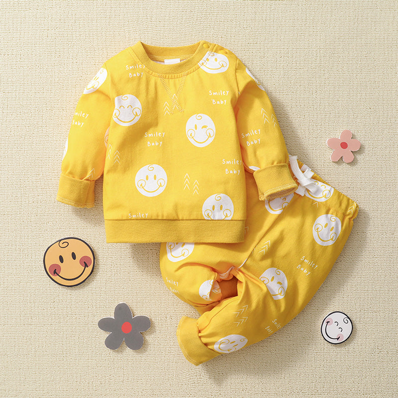 Smiley Baby Boy Cute Print Long Sleeve Sweatshirt set Wholesale