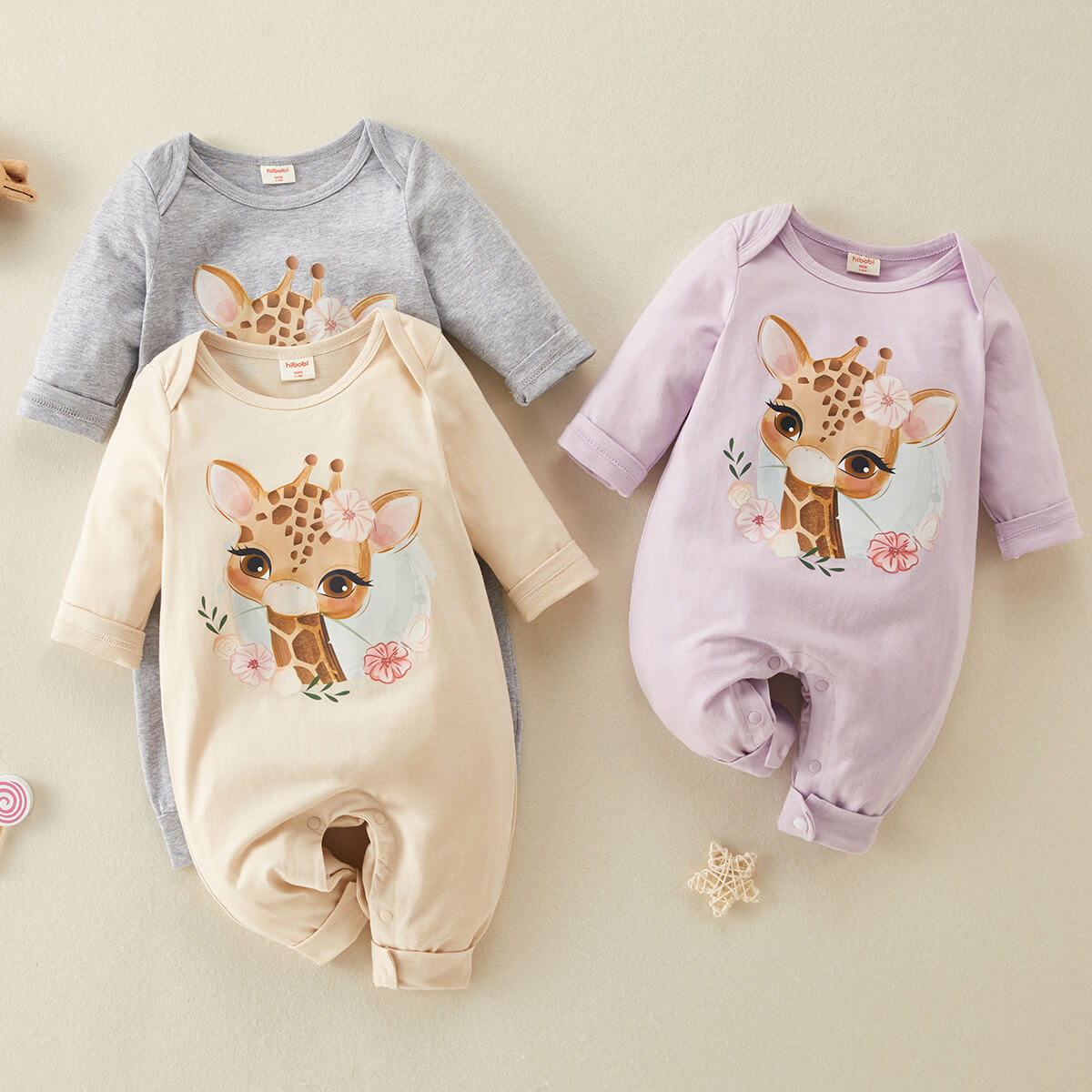 hibobi Baby Cartoon Giraffe Pattern Long Sleeve Jumpsuit Wholesale