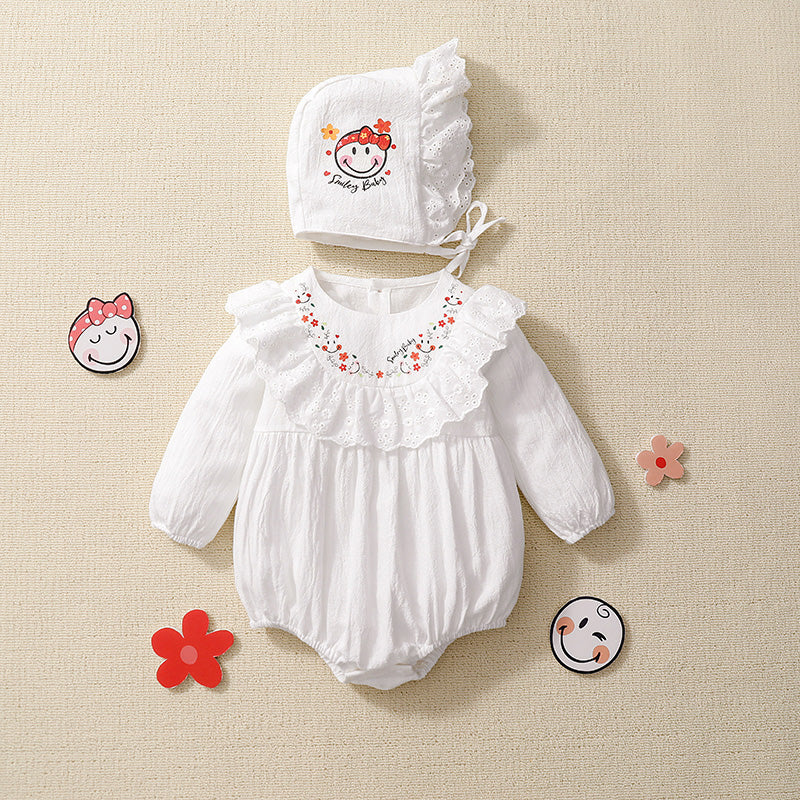 Smiley Baby Girl Cute Print Sweet Ruffle Long Sleeve Rompers & Pants Wholesale