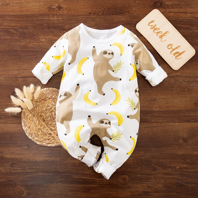 Baby Boy Animal And Banana Pattern Long Sleeve Jumpsuit Wholesale