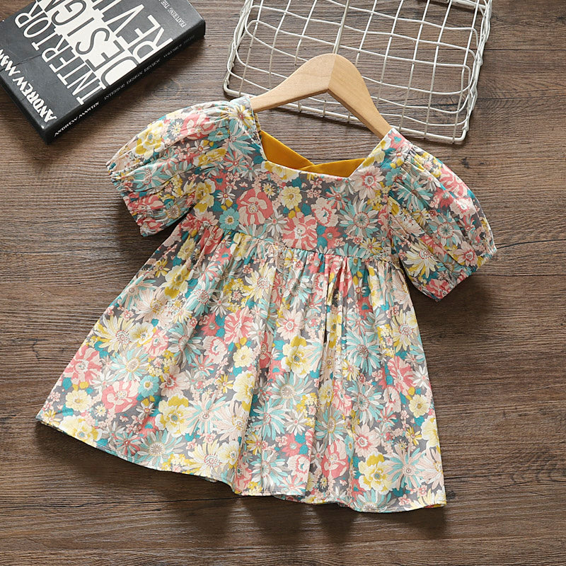 Toddler Girl Retro Square Neck Puff Sleeve Princess Dress Wholesale