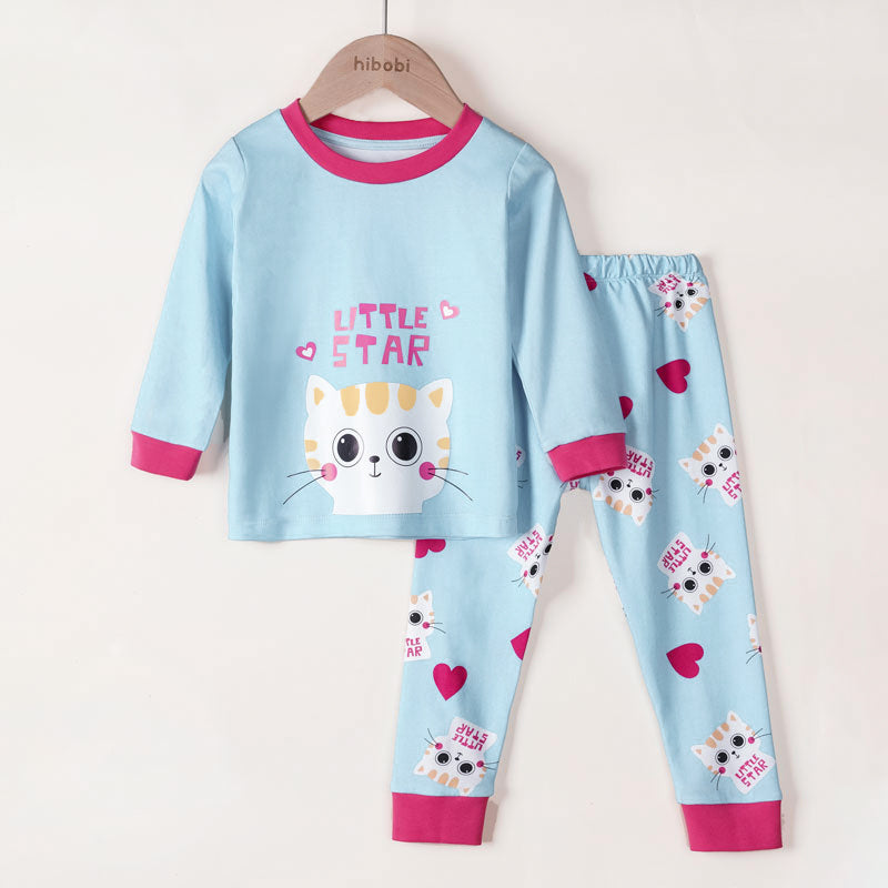 Toddler girl 100% Cotton Cute Cartoon Pattern Pajamas Set Wholesale