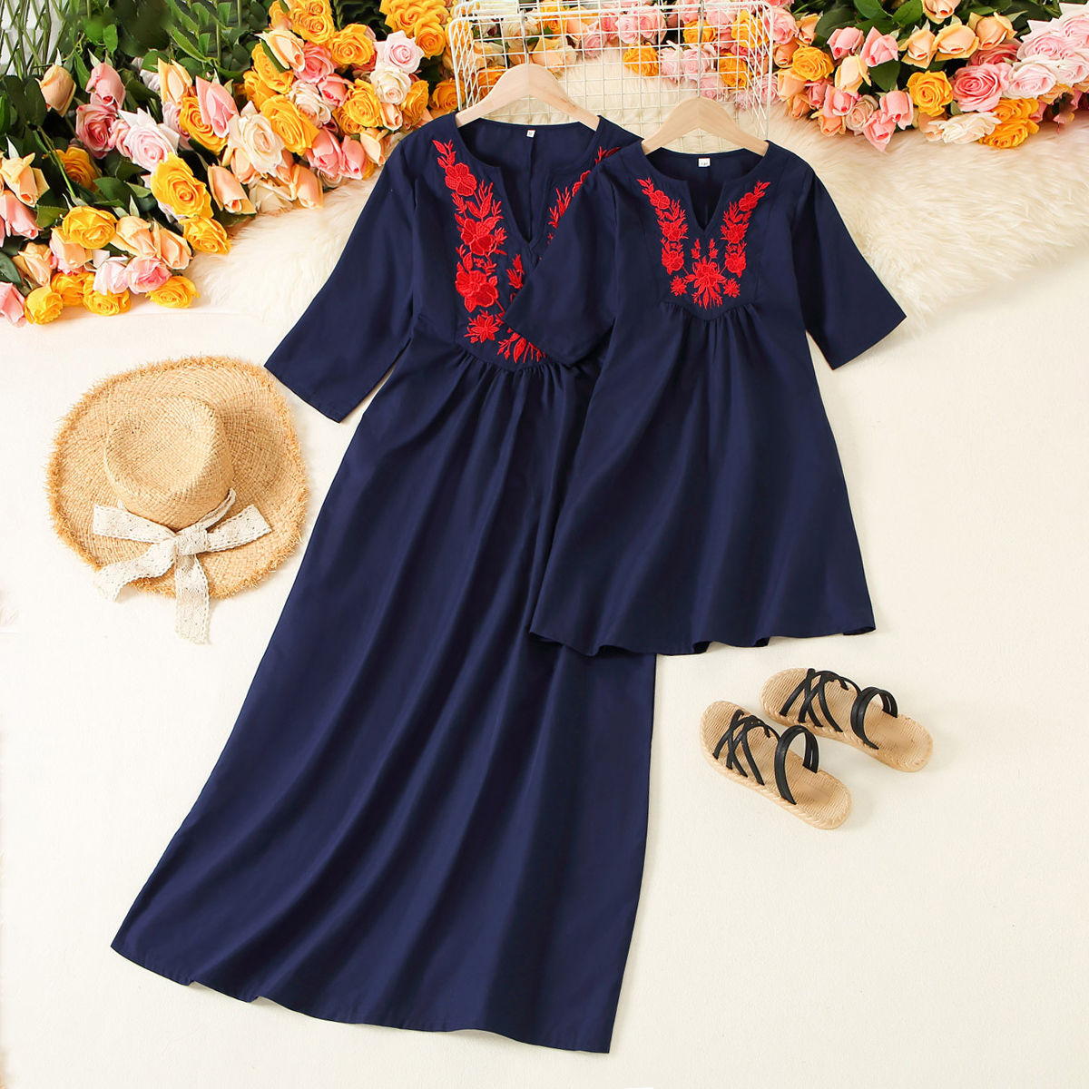 Elegant Embroidered Long Sleevele Dress for Mom and Me Wholesale