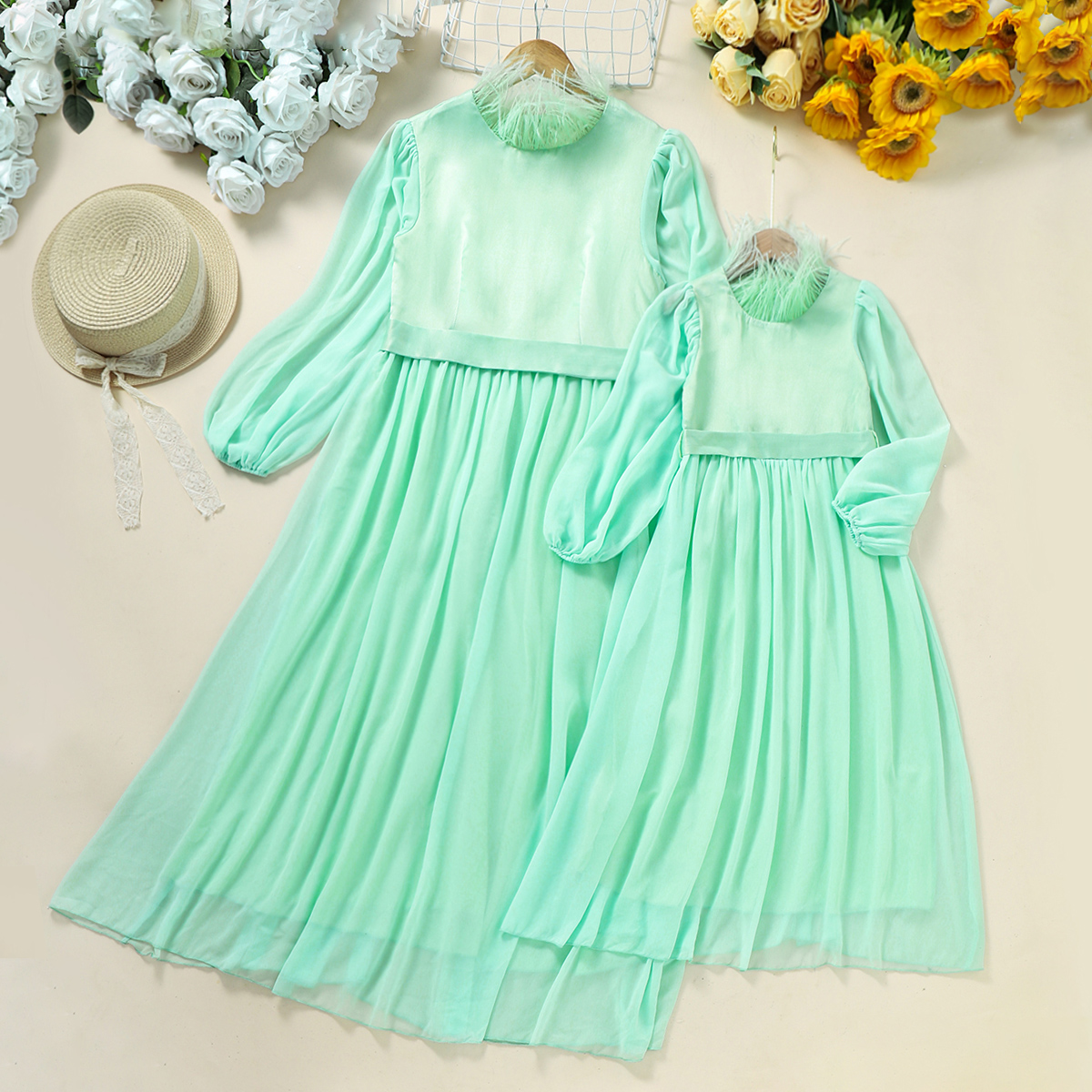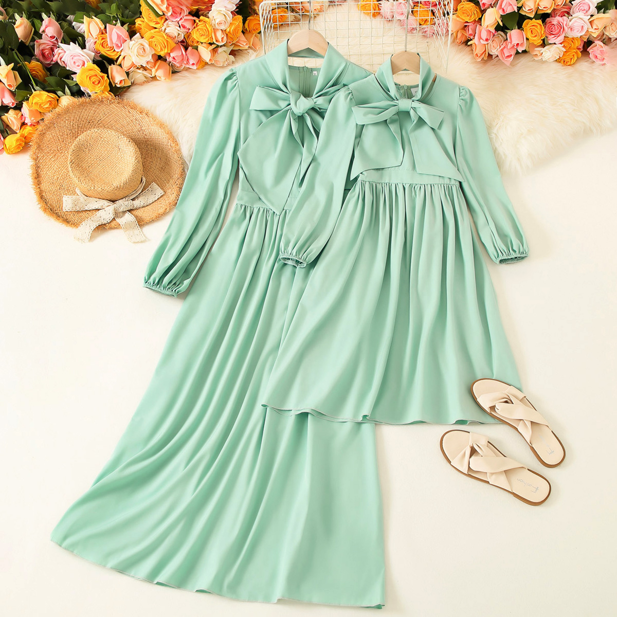 Elegant Solid Color Long Sleeve Dress for Mom and Me Wholesale