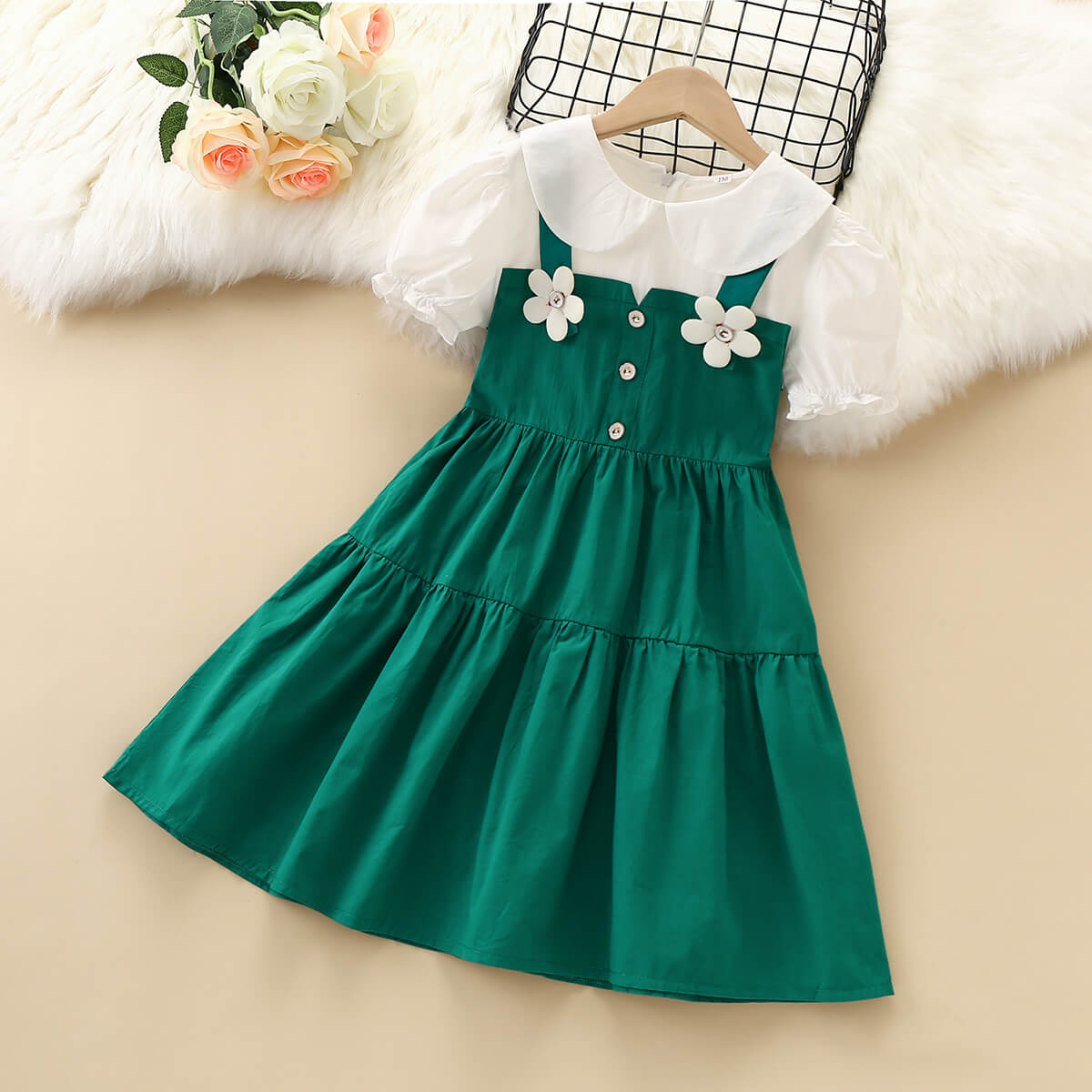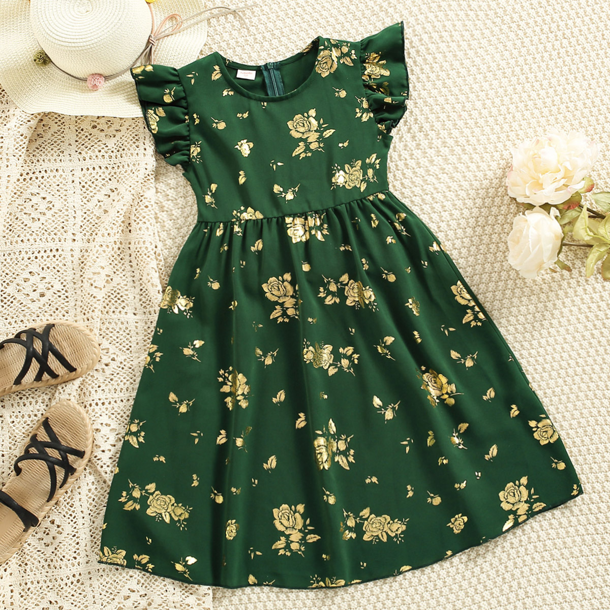 Kid Girl Gold Rose Print Dress Wholesale