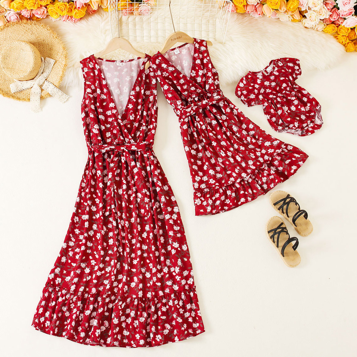 Sweet Floral Print Sleeveless Dress for Mom and Me Wholesale