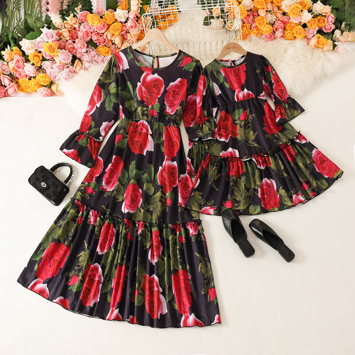 Sweet Floral Print Long Sleeve Dress for Mom and Me Wholesale