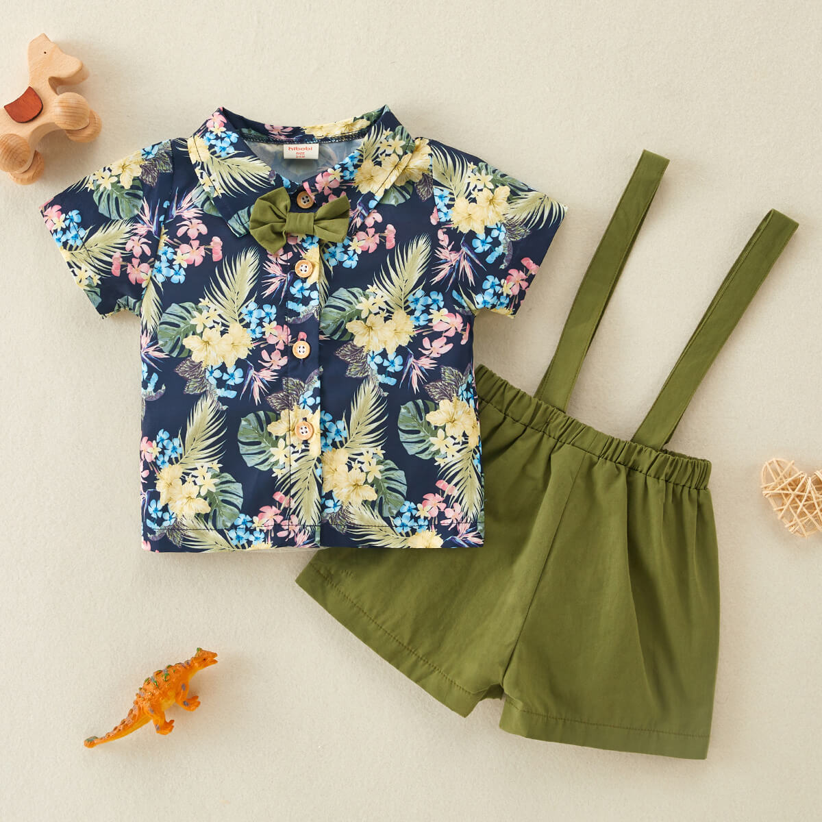 Baby Boy Floral Print Short-sleeve Shirt and Bib Shorts Wholesale