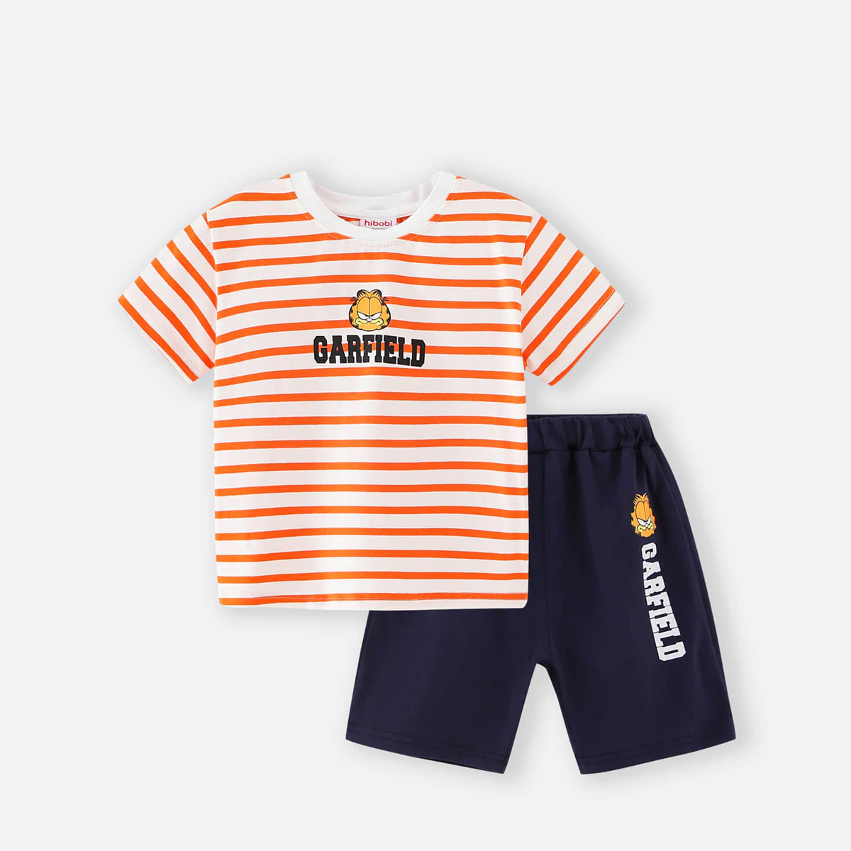 hibobi x Garfield Toddler Boys Casual Printing Striped Cartoon Cotton Suit Wholesale