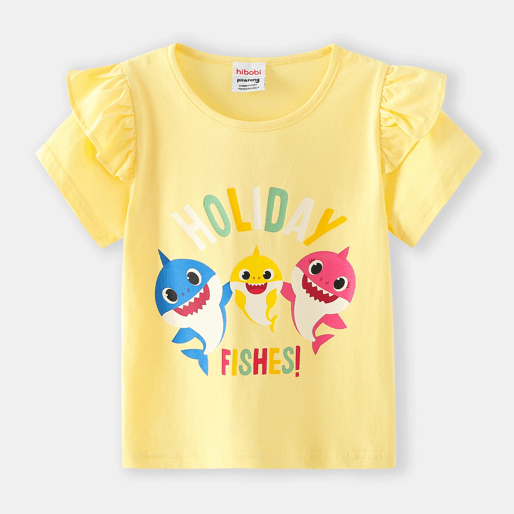 hibobi x SpongeBob Toddler Girl Casual Cute Letter Print Round Collar Fly Sleeves T-shirt Wholesale
