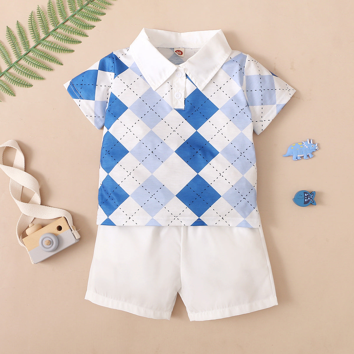 Toddler Boy Cotton Plaid Color-block Top & Shorts Wholesale