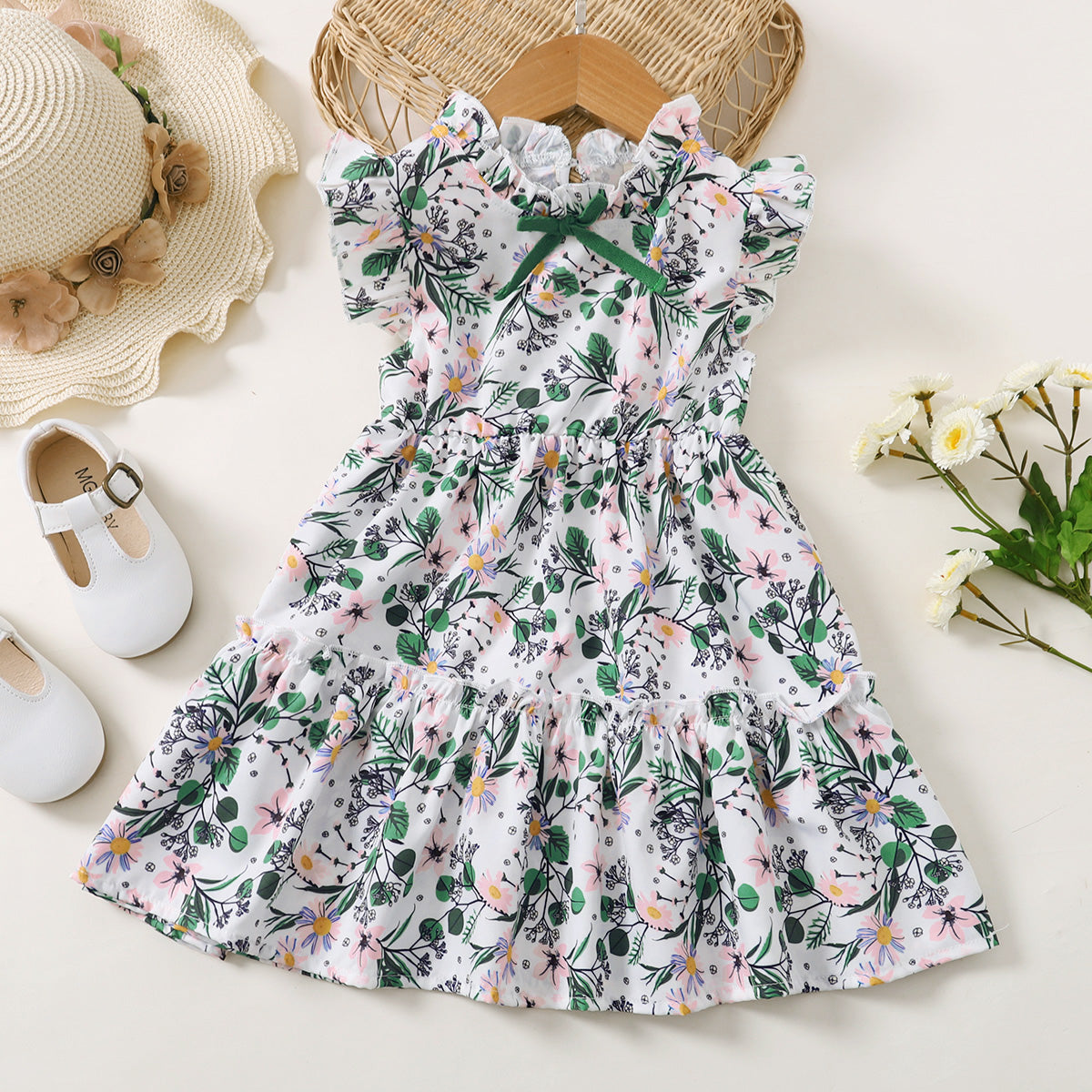Toddler Girls Cute Sweet Rainbow Stripes Bow Knot Decor Cotton Sleeveless Dress Wholesale