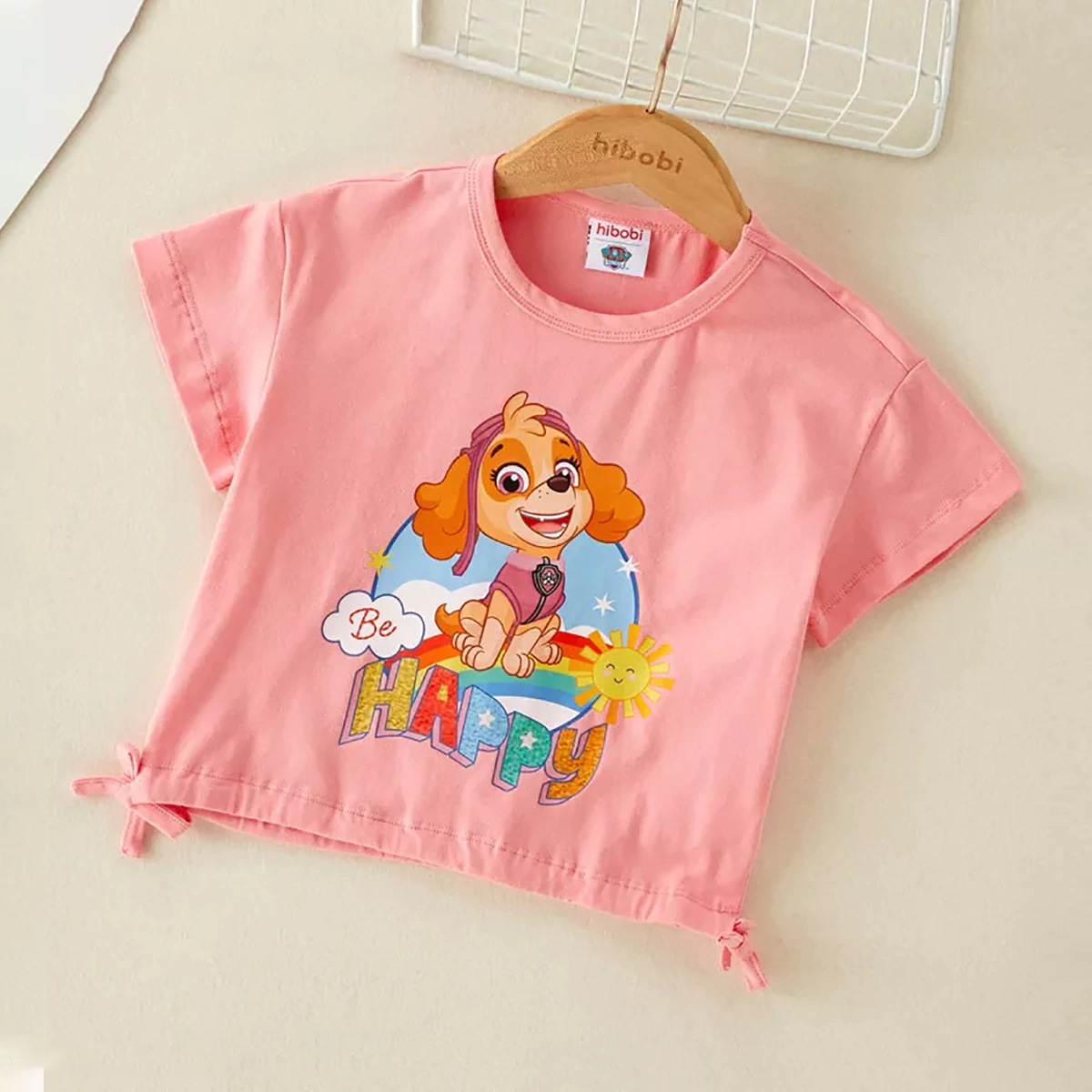 hibobi x PAW Patrol Toddler Girls Cute Casual Printing Cartoon Summer T-shirt Wholesale