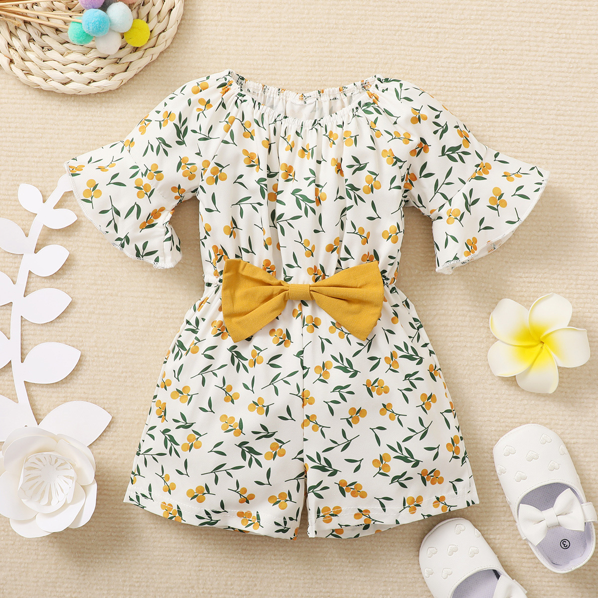 Baby Girl Sweet Floral Print Bowknot Overalls Wholesale
