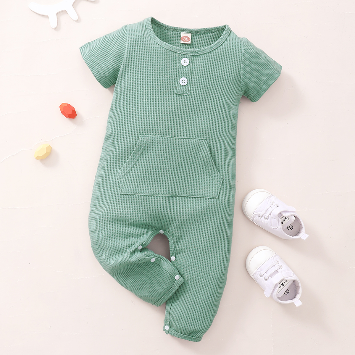Baby Boy Solid Color Pocket Decoration Short-sleeve Jumpsuit Wholesale
