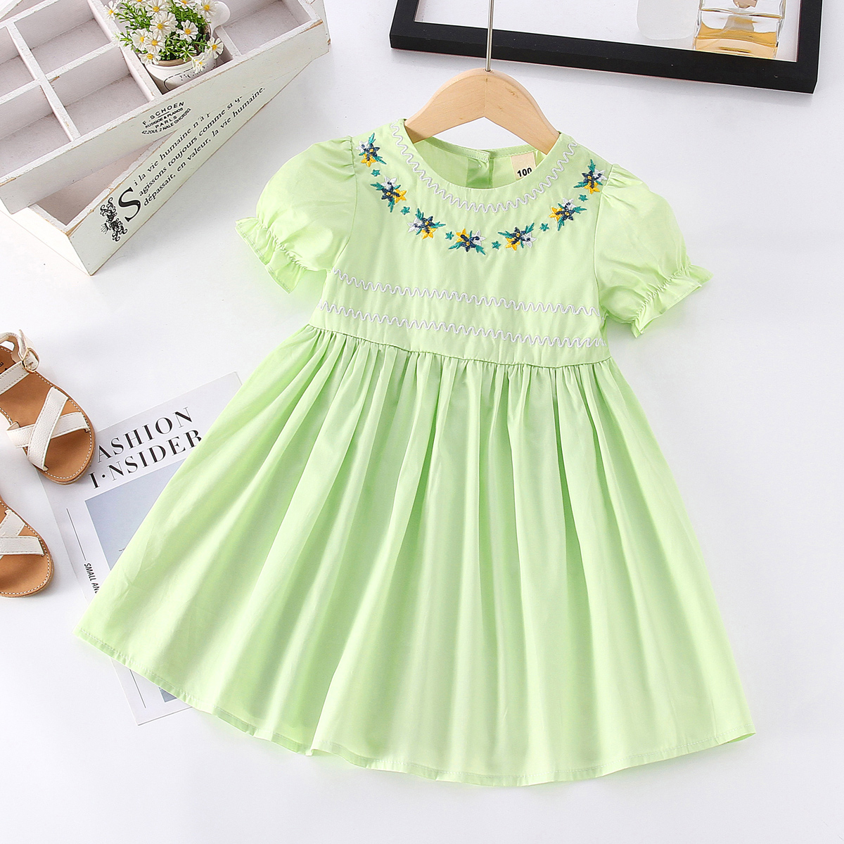 Toddler Girls Sweet Floral Princess Embroidery Dress Wholesale
