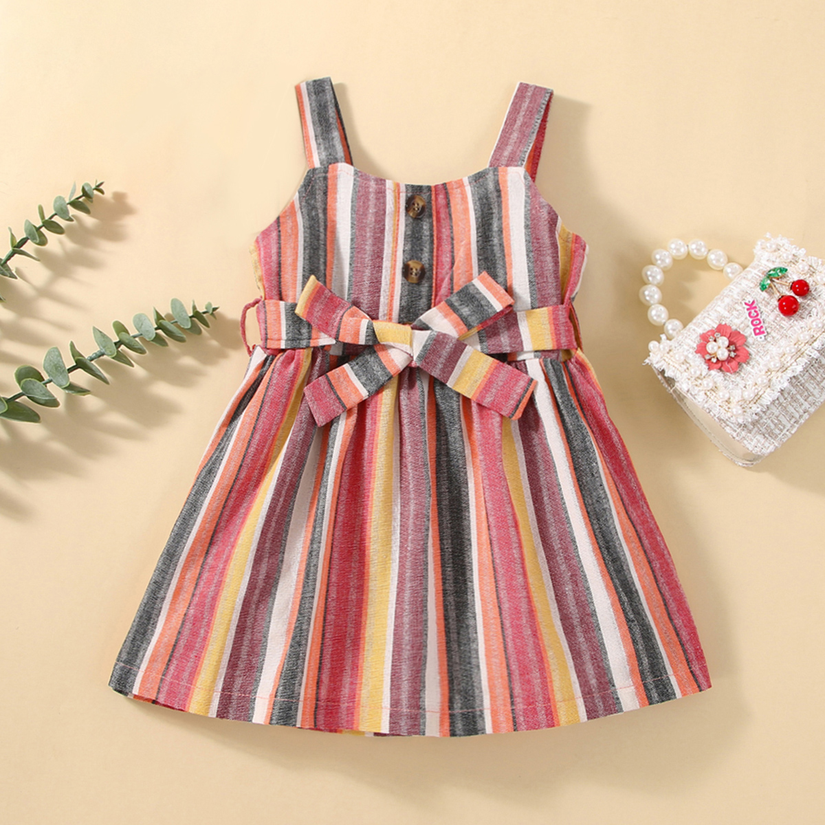 Baby Girl Color-Block Stripes Pattern Belt Suspender Dress Wholesale