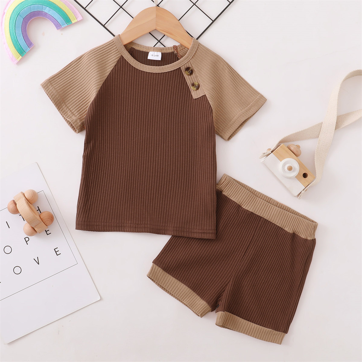 Toddler Boy Patchwork Color-block Ribbed Top & Shorts Wholesale
