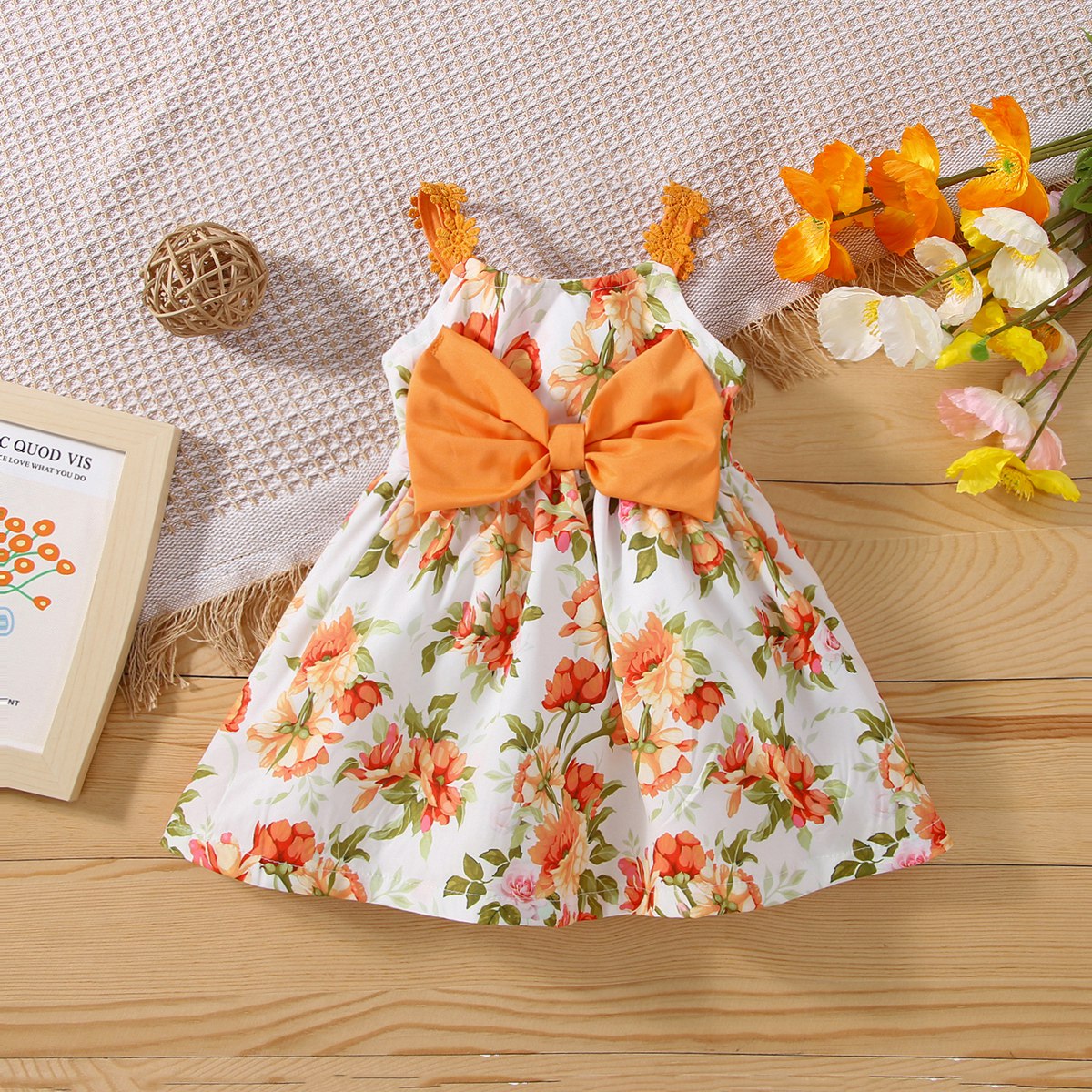 Baby Girl Floral Pattern Lace Bow Decor Dress Wholesale