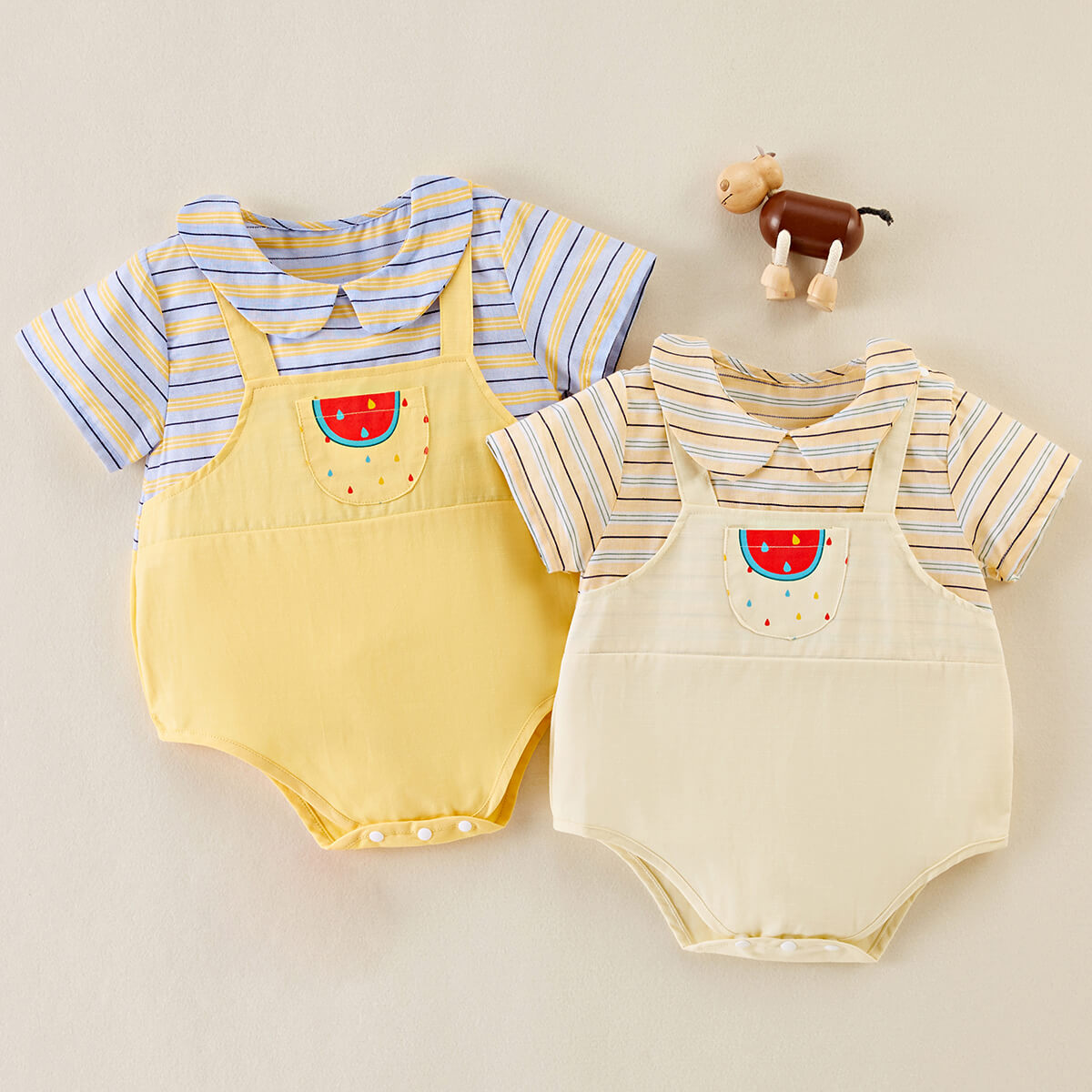 Baby Color-block Horizontal Stripes Watermelon Pattern Short-sleeve Bodysuit Wholesale