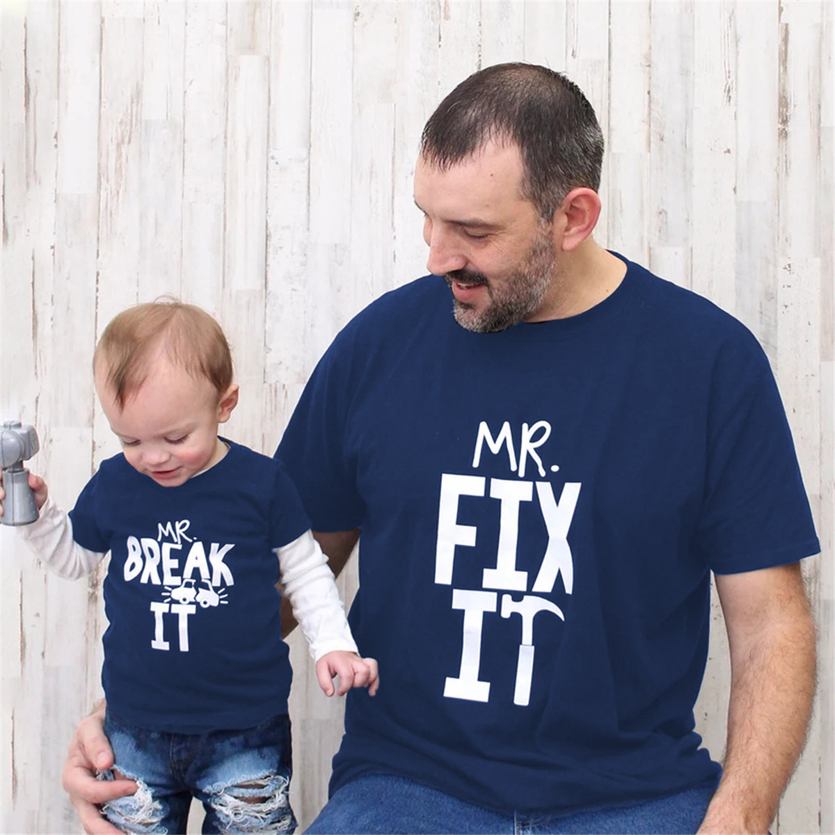 Causal Letter Pattern Print Matching Tees for Dad and Me Wholesale