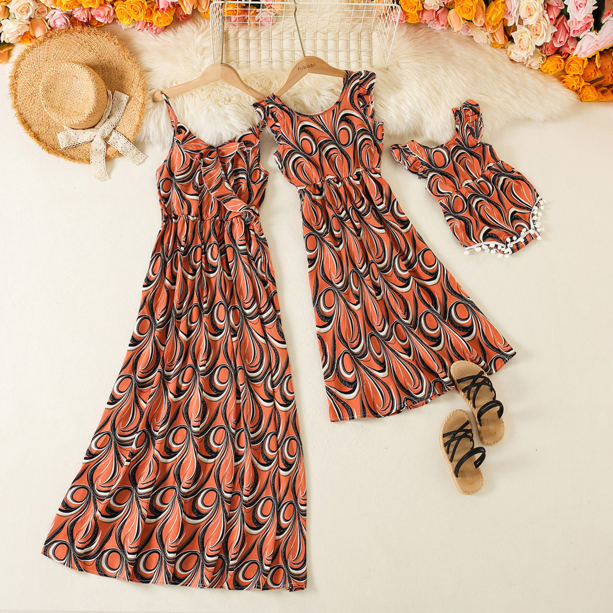 Elegant Geometric Pattern Print Sleeveless Dress for Mom and Me Wholesale