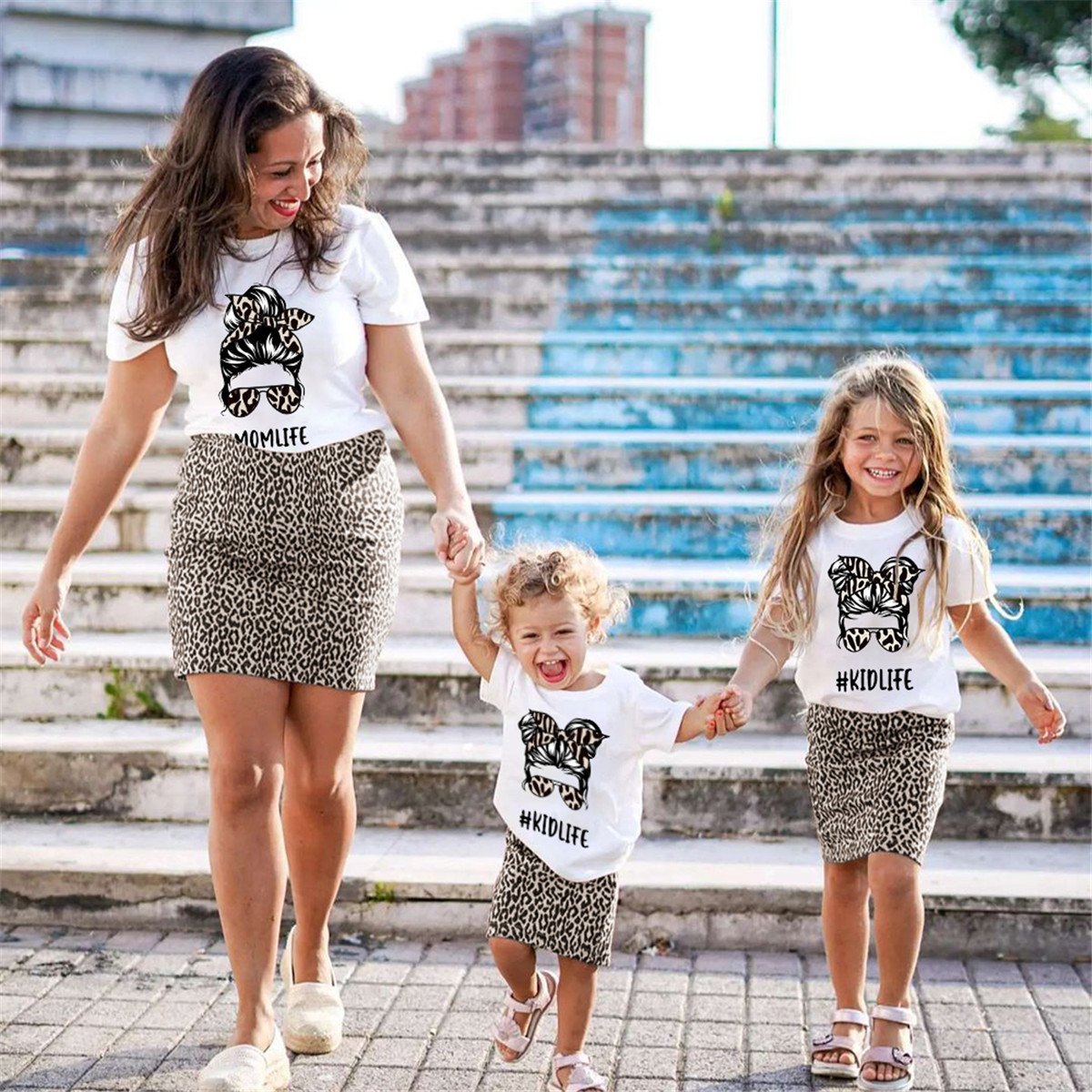 Sweet Cartoon Print T-shirt & Skirt Sets for Mom and Me Wholesale