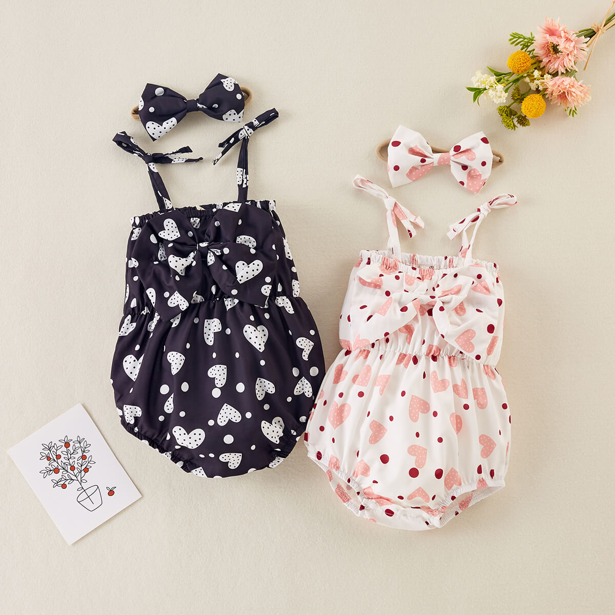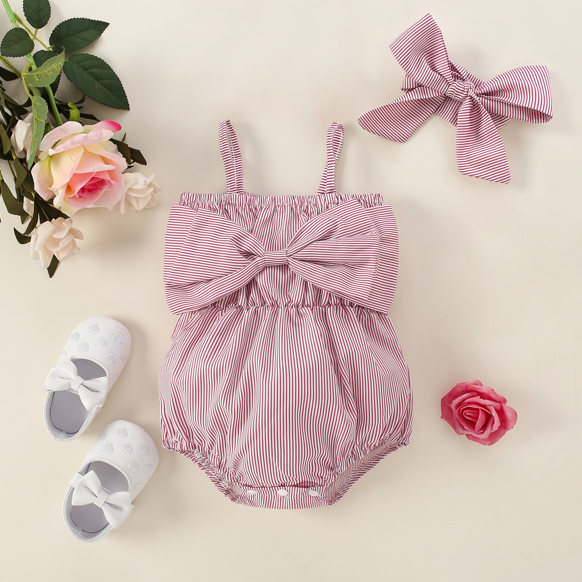 Baby Girl 2 Pieces Stripes Pattern Bow-knot Decor Bodysuit & Headband Wholesale