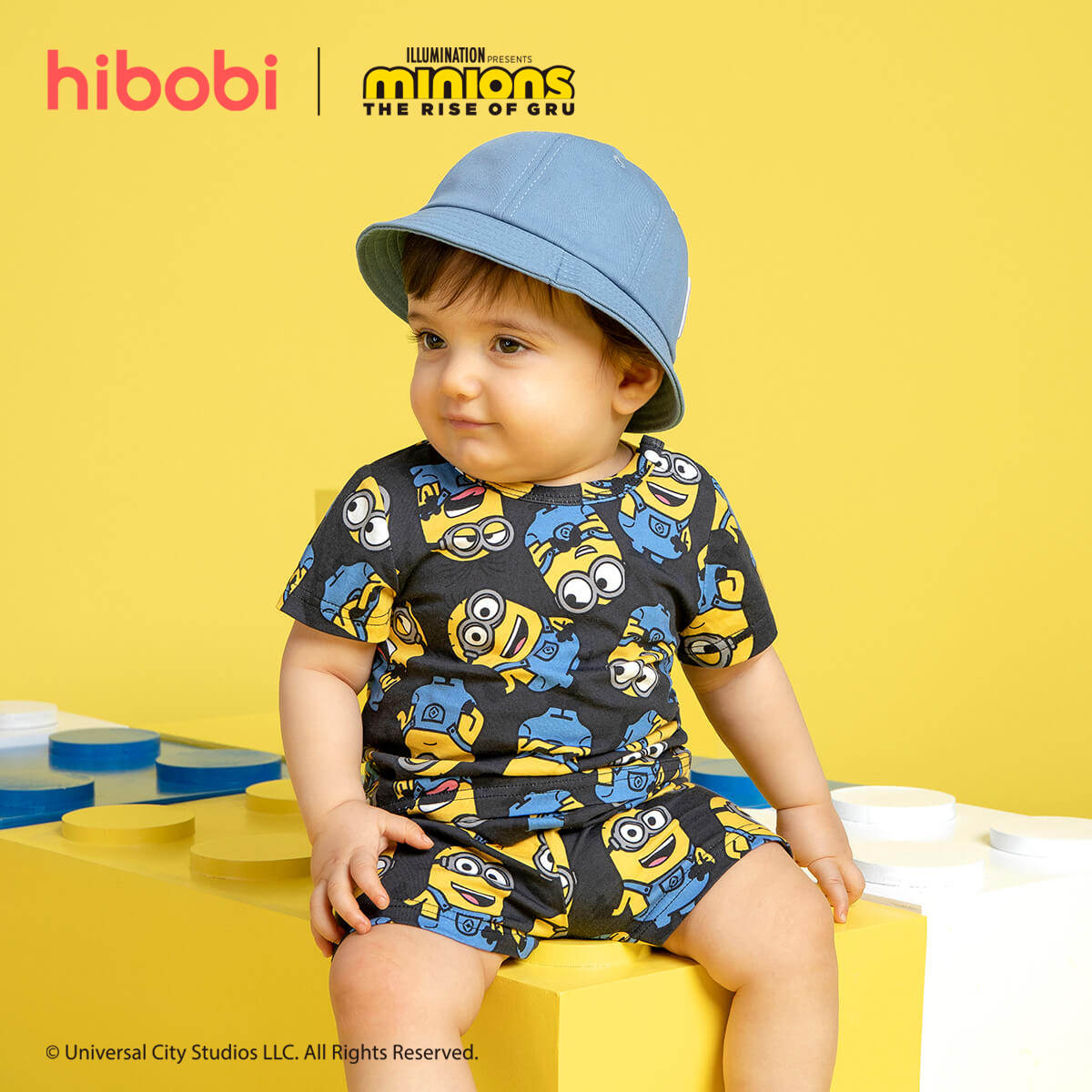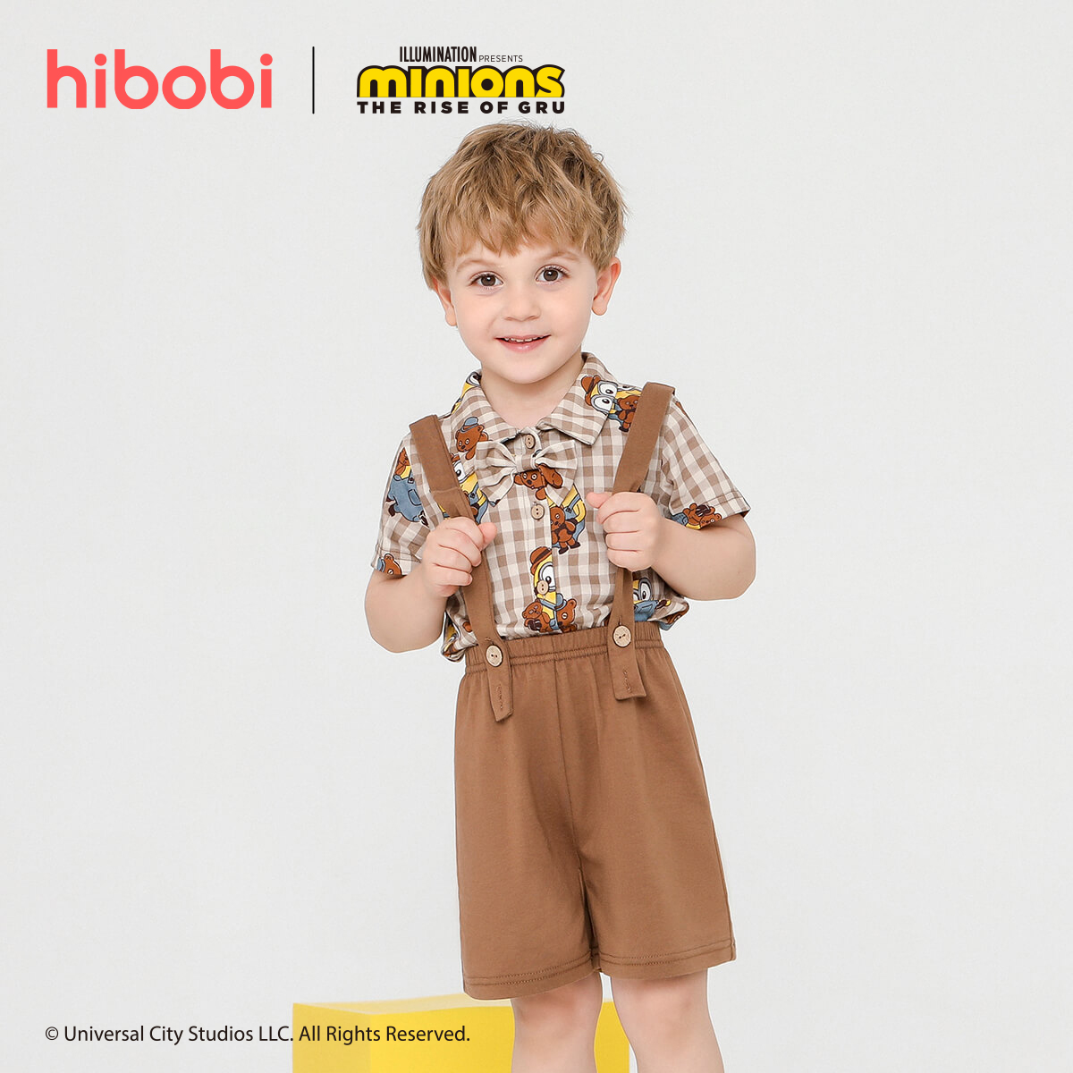 Minions × hibobi Boy Baby Printed Patchwork Short Sleeve Suit Wholesale