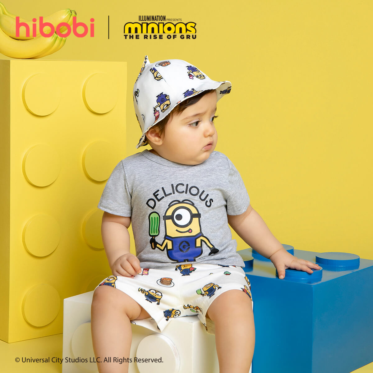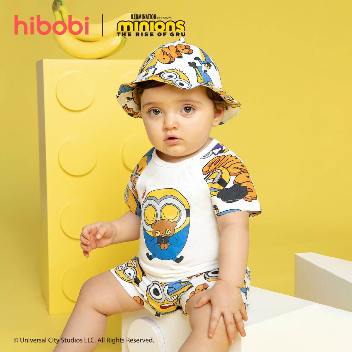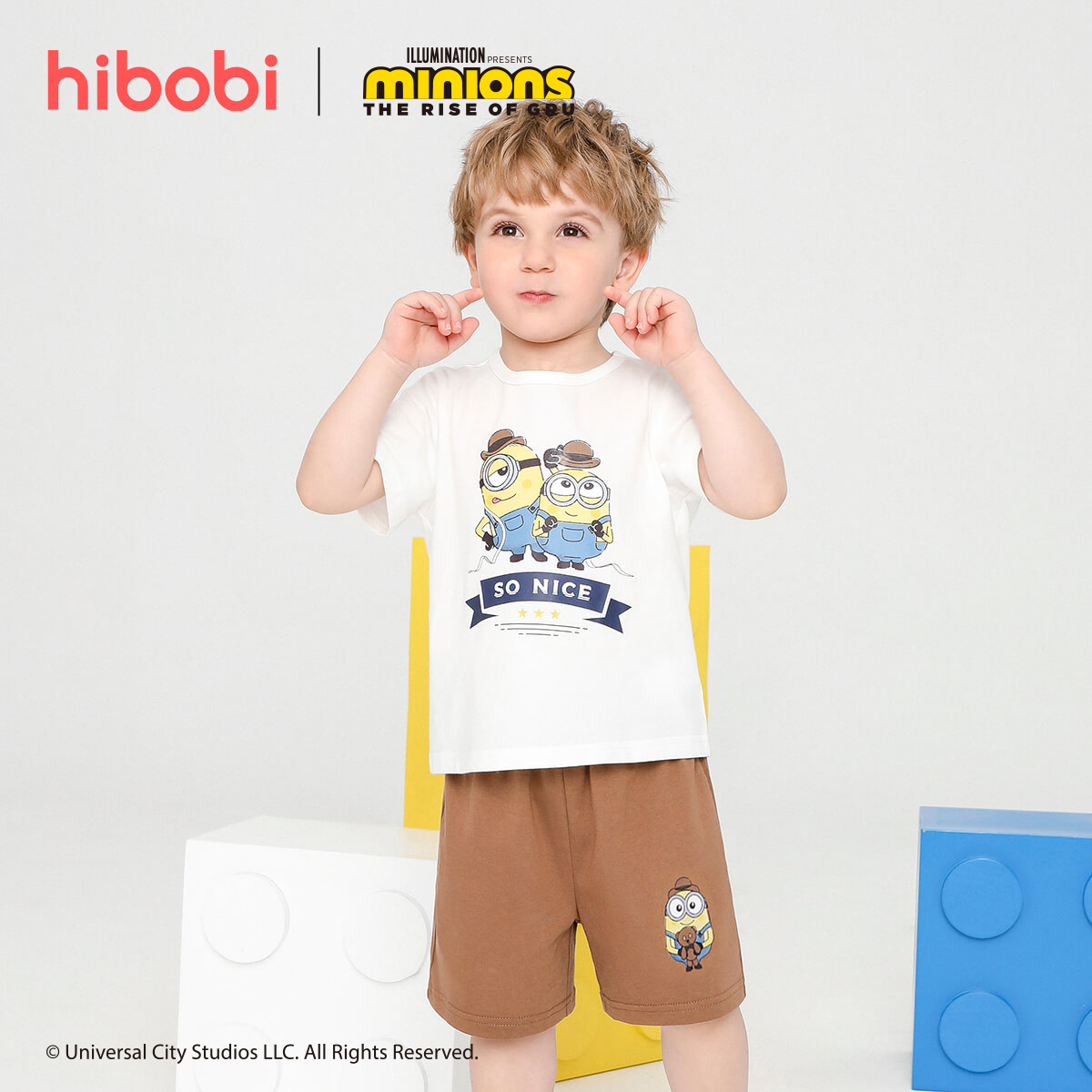 Minions × hibobi Boy Baby Printed White Shorts Set Wholesale