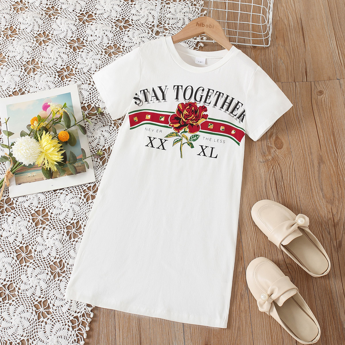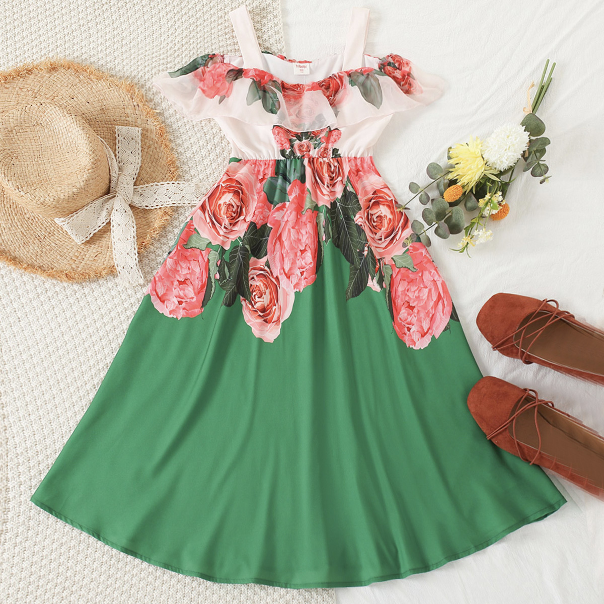 Kid Girl Gold Rose Print Dress Wholesale