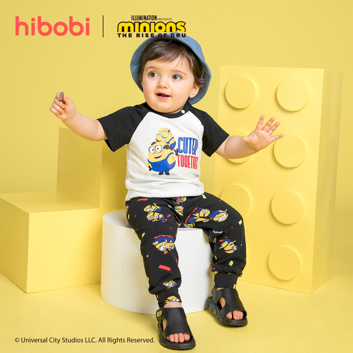 Minions × hibobi Boy Baby Printed Black Trouser Suit Wholesale