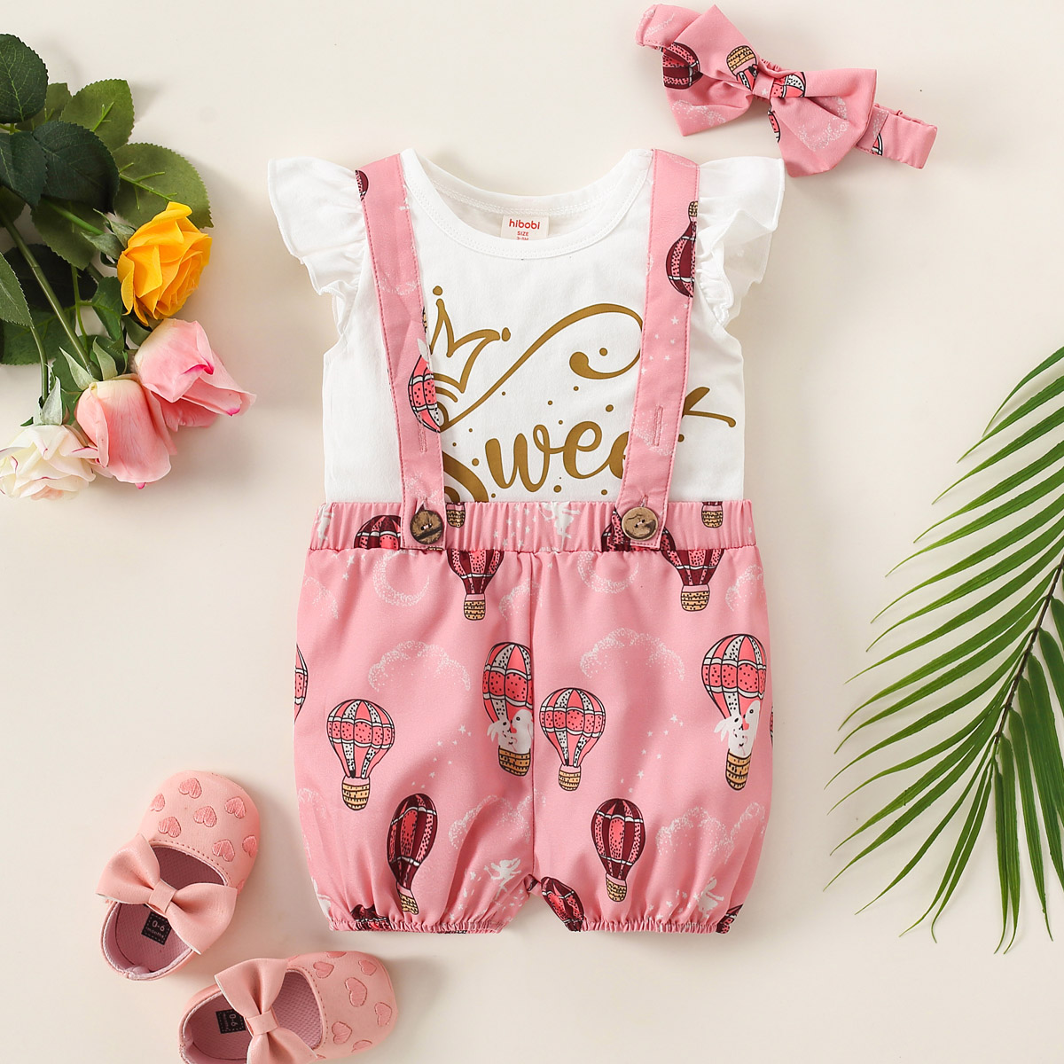hibobi Girl Baby Rabbit Hot-air-balloon Suspenders Suit Wholesale