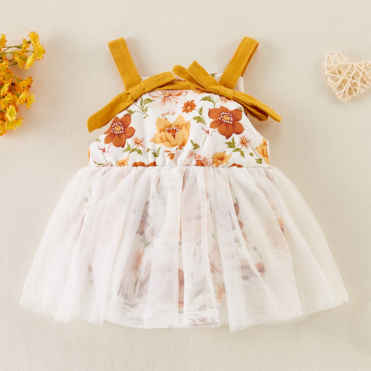 hibobi Girl Baby Floral Print Bow Talter Mesh Dress Wholesale