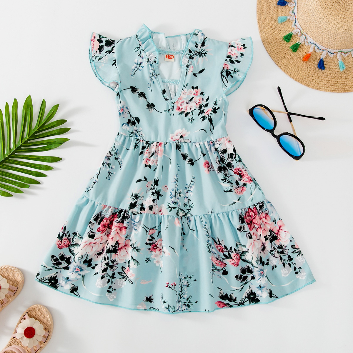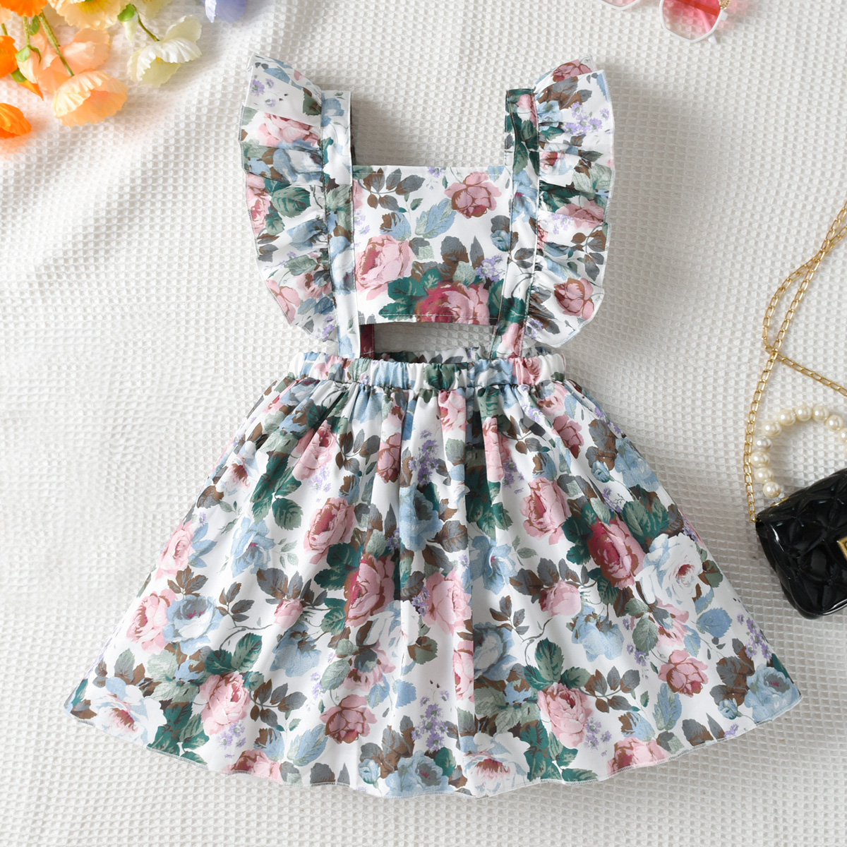 Toddler Girl Sweet Floral Fly Sleeves Dress Wholesale