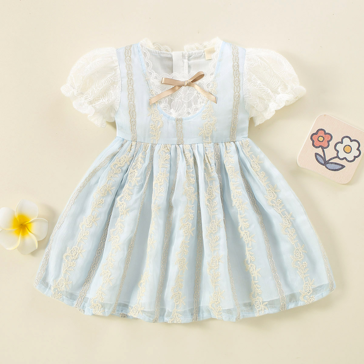 Toddler Girl Sweet Bow Knot Decor Solid Color Cupcake Dress Wholesale