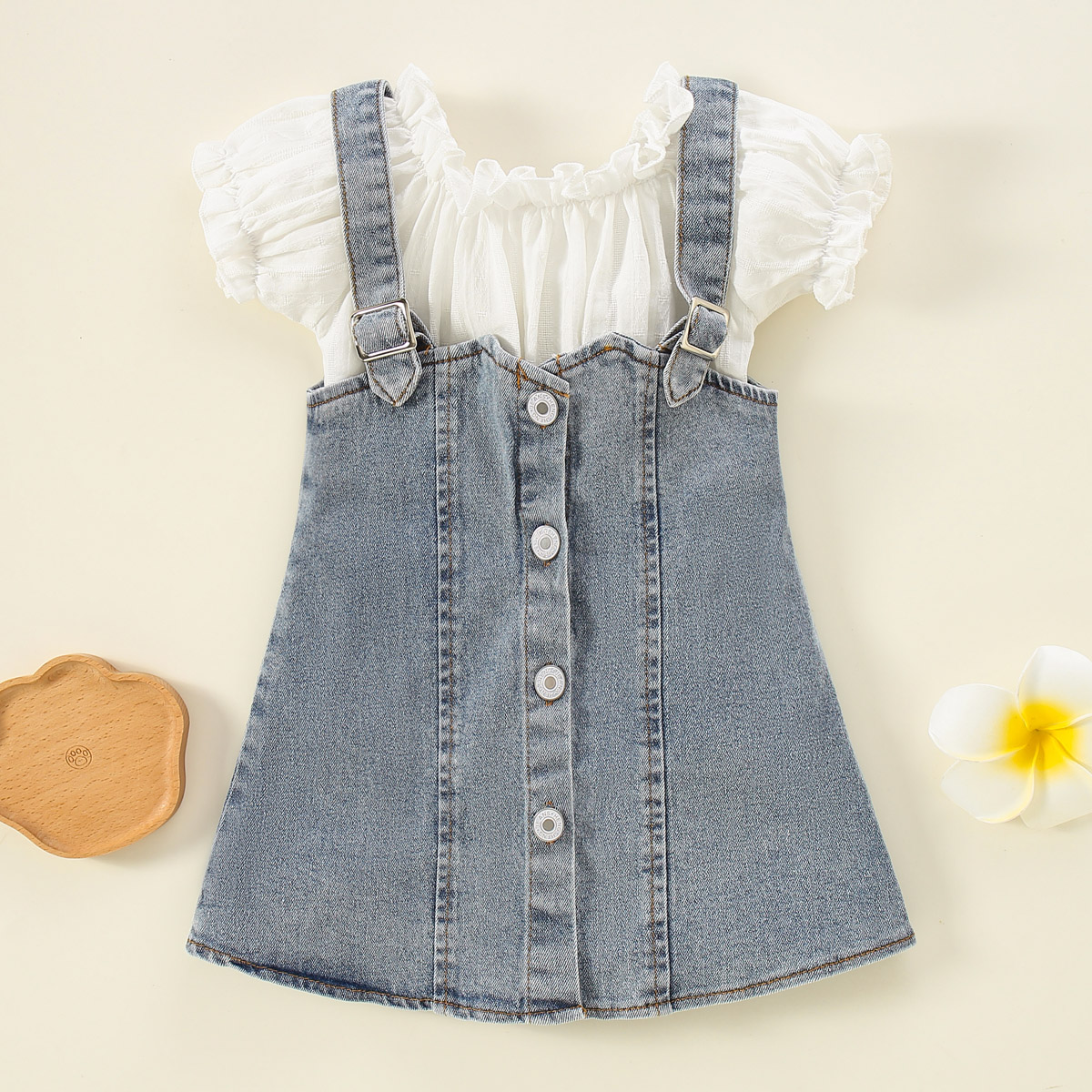 Toddler Girl Casual Plain Solid Color T-shirt & Strap Dress Wholesale