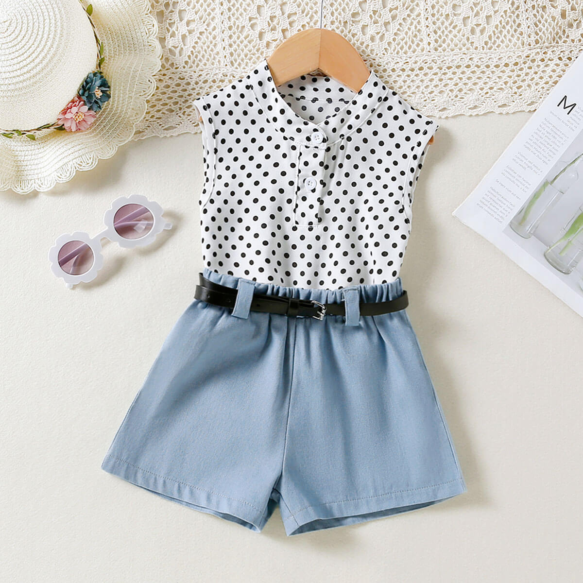 Toddler Girl Casual Eleguard Polka Dot Shirt & Shorts & Belt Wholesale