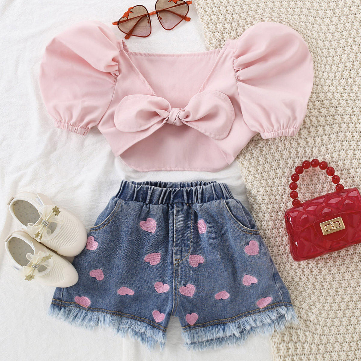 Kid Girl Heart Embroidery Denim Set Wholesale