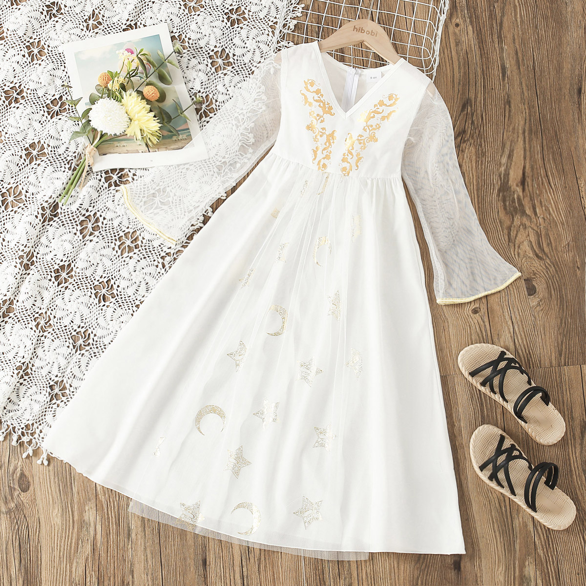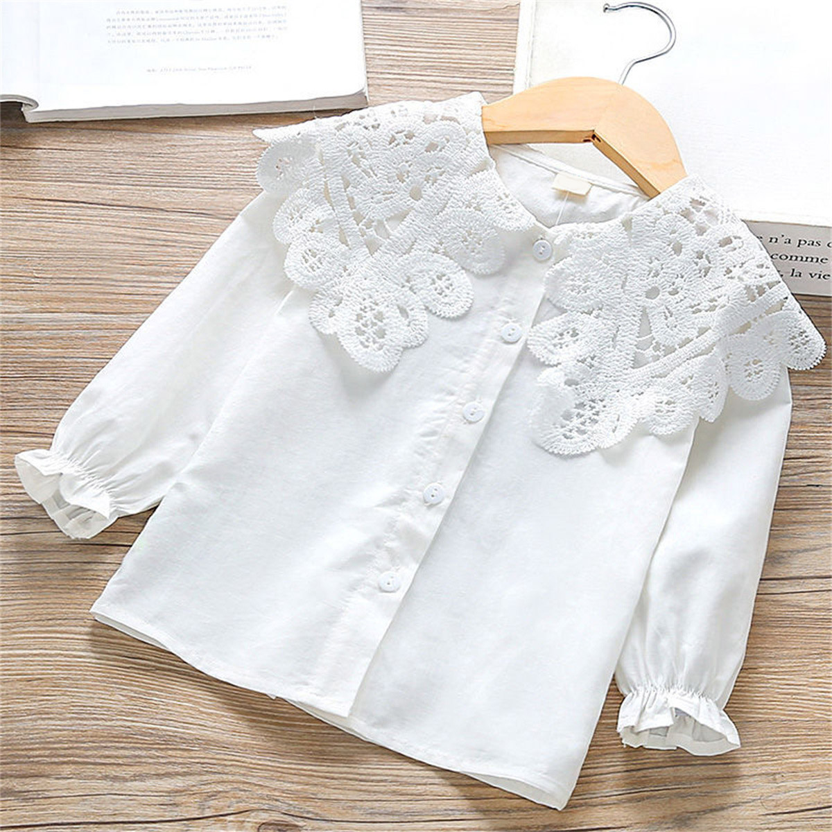 Kids Girls Sweet Long-sleeve Lace Round Neck Shirt Wholesale