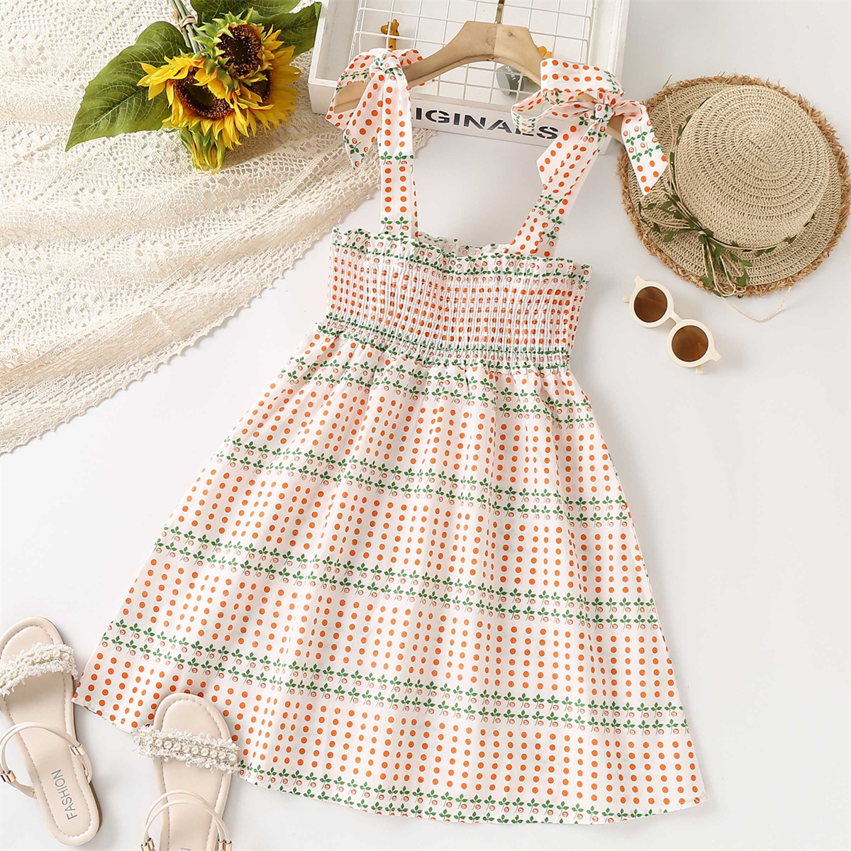 Kids Girls Sweet Style Polka Dot Bowknot Tied Dress Wholesale