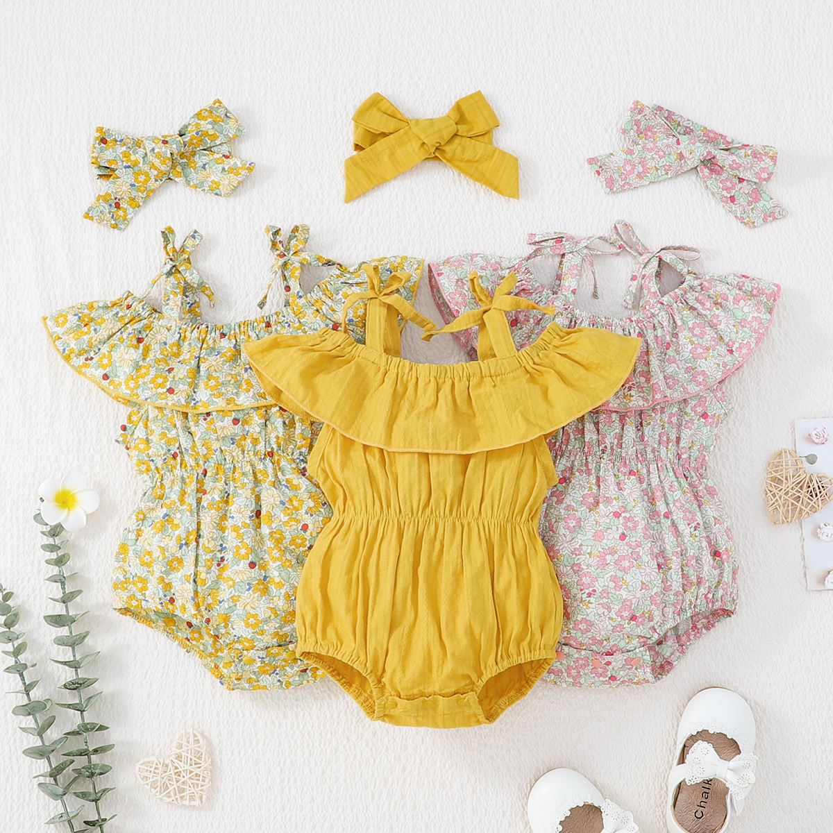 hibobi Girl Baby Suspenders Pastoral Floral Bodysuit & Headband Wholesale