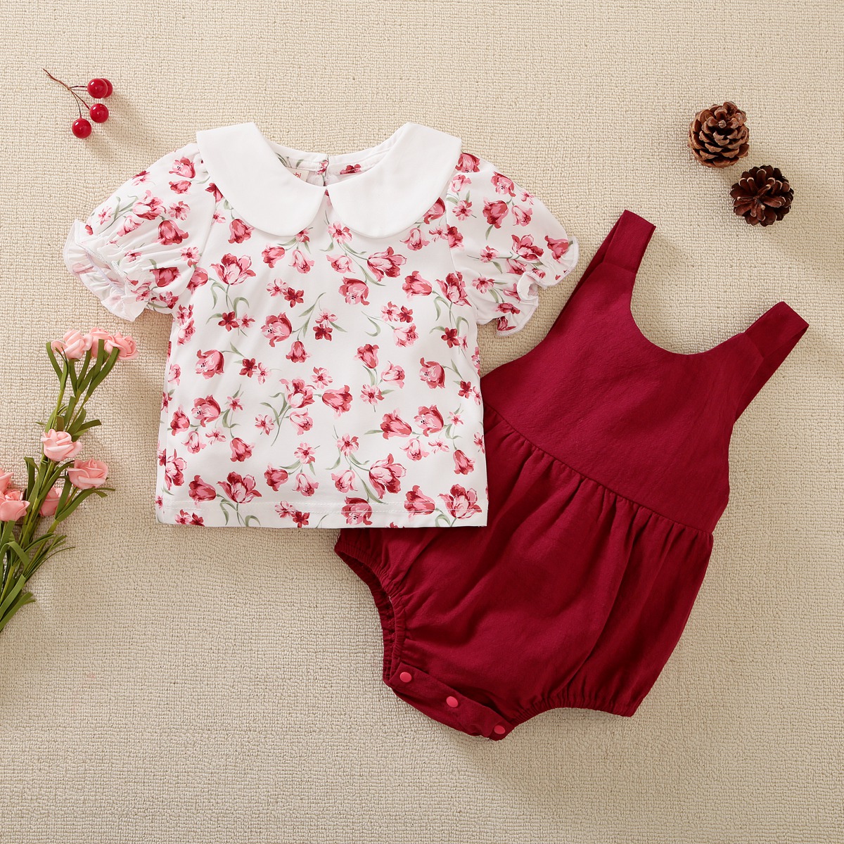 Baby Girl Floral Short Sleeve Shirts & Bib Shorts Wholesale