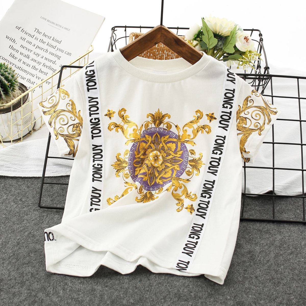 Kid Boy Baroque Gold Print T-shirt Wholesale