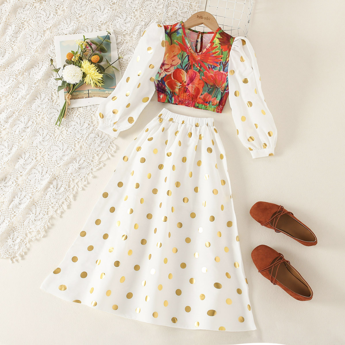 Kid Girl Polka Dot Floral Print Set Wholesale