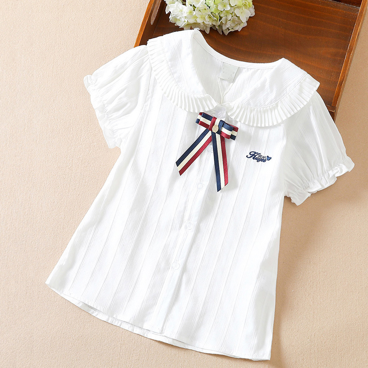 Kids Girls Sweet Bowknot Ruffled Puff Sleeve Shirt Wholesale