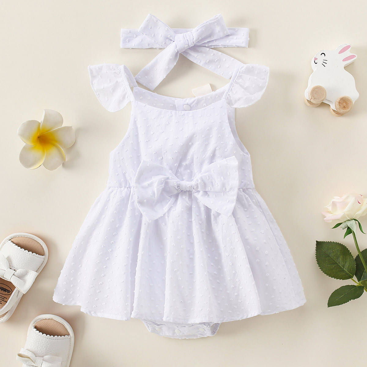 hibobi Girl Baby Solid Bowknot Halter Dress Bodysuit & Headbands Wholesale