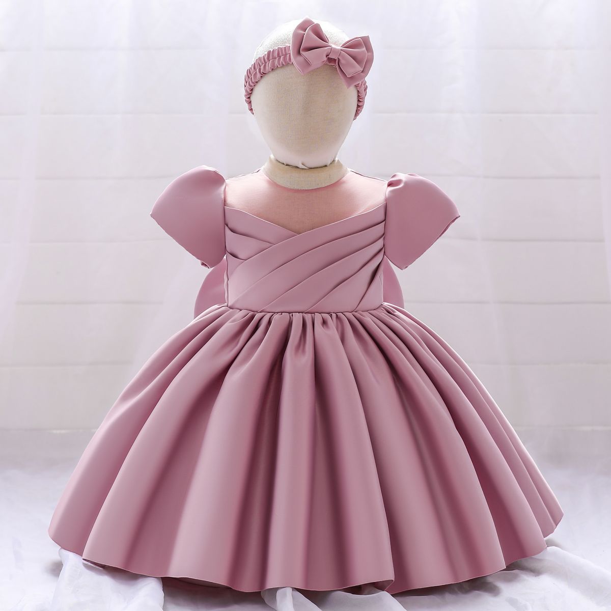 Baby Girl Beautiful Ruffle Solid Colour Formal Dress with Headband Wholesale