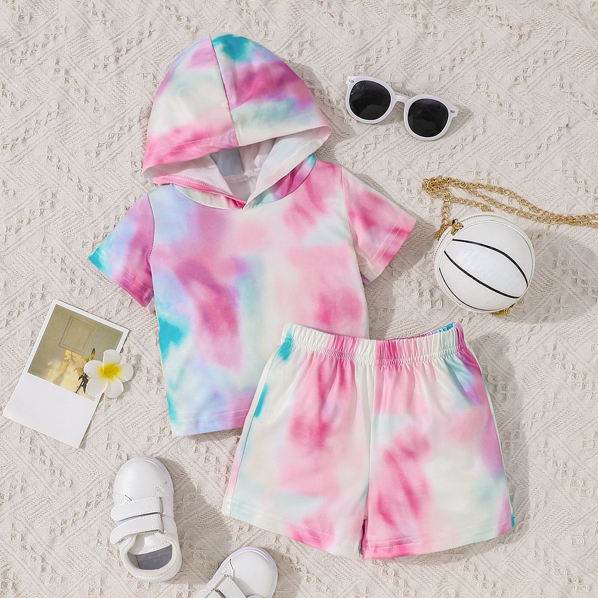 Baby Girl Tie dye Pattern Hoodie T-shirt & Shorts Wholesale